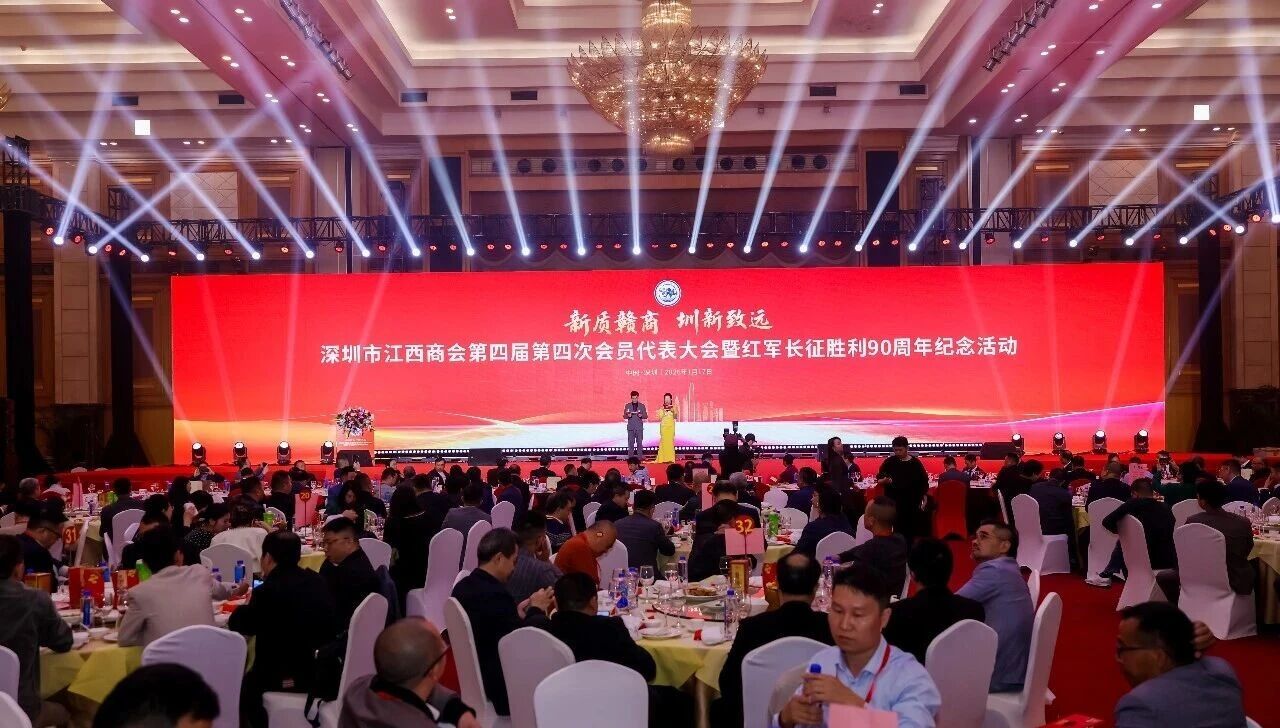 2026年1月17日,以“新质赣商 圳新致远”为主题的深圳市江西商会第四届第四次会员代表大会暨红军长征胜利90周年纪念活动在深圳福田五洲宾馆举行。全国人大代表、赣商总会会长熊建明,江西省人民政府驻广东(深圳)办事处党组书记、主任赖晓岚,深圳市工商联党组成员、专职副主席周建军等领导到会指导。深圳市社会组织总会、工业总会等兄弟商协会代表及商会会员、各界嘉宾共计500余人齐聚一堂,共商商会高质量发展大计,共忆长征峥嵘岁月,共启新时代奋进新程。