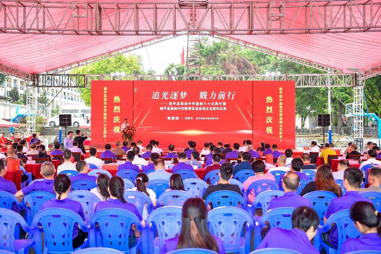 2026年4月6日,饶平县第四中学举办建校85周年暨教育促进会成立5周年大会,各级领导、各界嘉宾、校友与学校师生欢聚一堂,共庆盛事,共叙情谊,共谋饶平四中发展大计,共促饶北山区教育事业高质量发展。