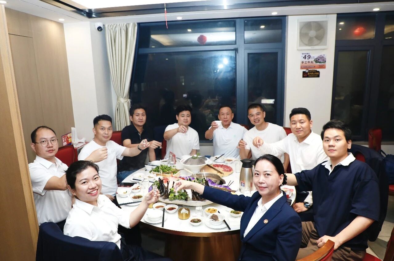 餐叙交流时,黄淑水副会长讲述了品牌从2000年创立至今的发展故事,分享了“鲜切现涮、匠心品质”的经营理念,以及坚守食材本源、传承潮汕味道、打造标准化连锁品牌的心得体会。历经二十六年深耕,“潮德阿水”目前拥有9家门店,员工400人,总营业面积5500平方米,总餐位2800个,年接待顾客超115万人次,成为潮汕牛肉火锅领域的标杆品牌。