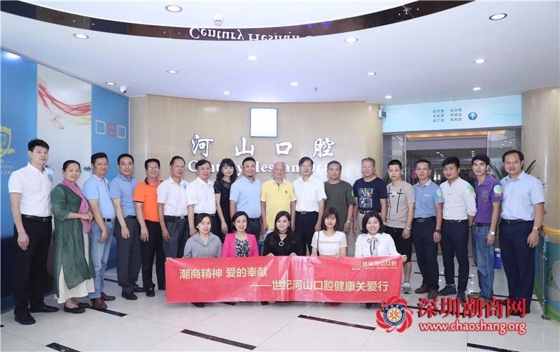 为提高会员的口腔保健意识,增加牙病防治知识,树立口腔健康观念,2018年6月20日上午,由深圳市潮汕商会主办、张河三常务理事单位深圳世纪河山口腔管理有限公司协办、深圳市潮汕商会健康工作委员会(以下简称:健工委)承办的“潮商精神·爱的奉献——世纪河山口腔健康关爱行”在深圳世纪河山口腔门诊部(西乡旗舰店)举行。