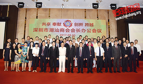 2017年8月5日下午,深圳市潮汕商会在大中华希尔顿酒店三楼宴会厅召开会长办公会议。创会会长、永远荣誉会长吴开松,会长吴木棠,驻会会长黄育宏,党委书记邓东,常委会成员周南、方荣江、陈镇文、钟美财、张…