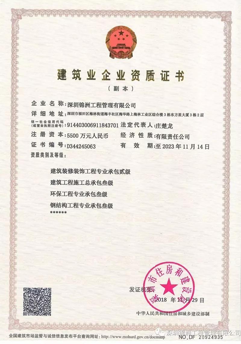 【副会长单位】深圳锦洲公司荣获四项工程施工资质!
