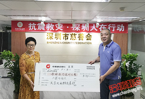 2017年8月8日21时19分46秒,四川阿坝州九寨沟县发生7.0级大地震,亿万国人聚焦抗震救灾。深圳市潮汕商会名誉会长陈健辉第一时间向灾区捐款2000元,并在自己的朋友圈、微信群发起捐款接龙,得到热烈响应,仅半天募集捐款十多万元。8月10日下午,陈健辉名誉会长等代表“大吉大利微信群”中的162名捐款人将所有137000元捐款送到了深圳市慈善会。