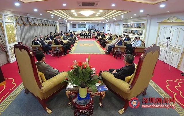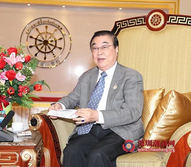 黄小祥主席对潮商东盟一带一路投资基金的成立背景、战略目标等情况做了介绍。他表示,一百多年前,潮人先辈远离家乡漂洋过海来到泰国,经过多年的艰苦奋斗,在政治、经济、文化各领域涌现了一批又一批的杰出人物,创造了辉煌的成就,为泰国社会做出了突出的贡献,同时创造了宝贵的精神财富——敢拼敢赢的潮商精神。今天我们怀着崇敬的心情来到泰国潮州会馆向各位老一辈潮商企业家学习取经,希望通过加强海内外潮商的交流合作,帮助在祖国改革开放进程中成长起来的年轻一代潮商企业家到东盟、到泰国来寻求新的发展机会,结出新的丰硕成果。
