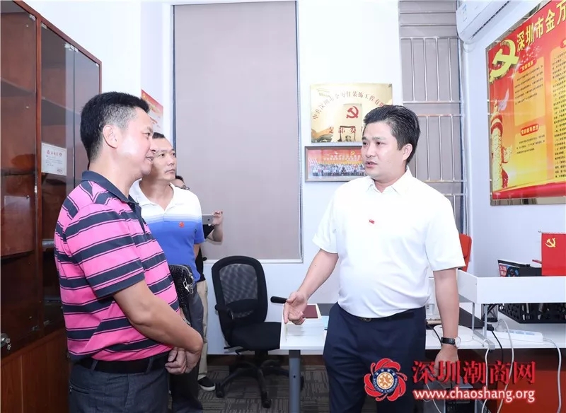 2018年8月30日,汕尾市工商联党组成员、市非公党工委专职副书记林腾文一行10余人莅临我会访问交流。下午,邓东书记等陪同林腾文副书记一行到党委下属党支部——深圳市金万佳装饰集团有限公司党支部参观交流。