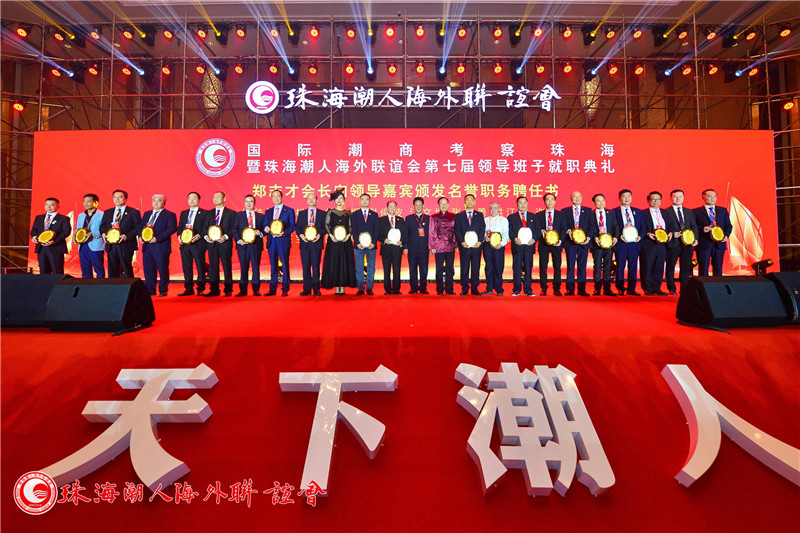天下潮人,四海同心,商机互动,振兴中华!2019年3月3日,国际潮商考察珠海暨珠海潮人海外联谊会第七届领导班子就职典礼在珠海横琴湾酒店隆重举行,来自潮汕四市代表团、海内外100多个潮团的领袖和商界精英、珠海市有关部门及兄弟社团代表团、潮联会全体会员近1000人,共同见证了新一届领导班子履职。