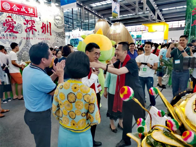 2019年5月18日下午,广东省文化和旅游厅党组书记、厅长汪一洋、汕尾市委常委、宣传部部长曾晓佳、汕尾市政府副市长余红、汕尾市文化广电旅游体育局局长蔡东升、陆丰市副市长陈月及陆丰市文化广电旅游体育局局长林进军等莅临汕尾馆,关心指导此次汕尾馆的参展工作。