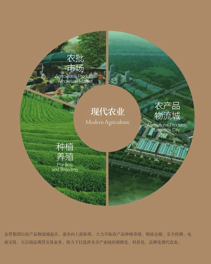 金晋集团创建于1997年,是一家集现代农业、房地产、金融投资、高新技术为一体的综合性投资集团。集团秉承“至臻品质,创领未来”的品牌理念,坚持“以人为本”,凭借科学的战略规划及敏锐的市场洞察,成为市场创新服务的领军者。经过二十余年的深耕发展,金晋已立足深圳,布局珠三角、长三角、国外市场,形成了“跨地域、跨产业、多元化”的战略发展格局,业务涵盖检验检测、生物技术、食品安全等重要领域,旗下设:生态农业研发中心、特种设备检验检测中心、新技术检验检测国际研究院、人才应用培训中心,具备各类科研人员,致力成为中国最具创新价值的综合运营集团。