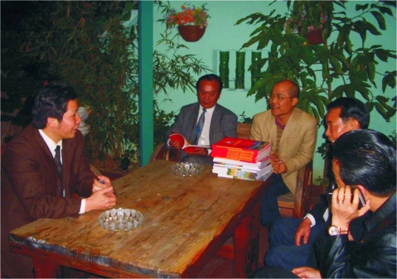 创会领导小组:会长吴开松(左三),副会长黄育宏(左二)、周南(右三)、蔡文川(右一)、吴木棠(左一),秘书长邓东(右二)