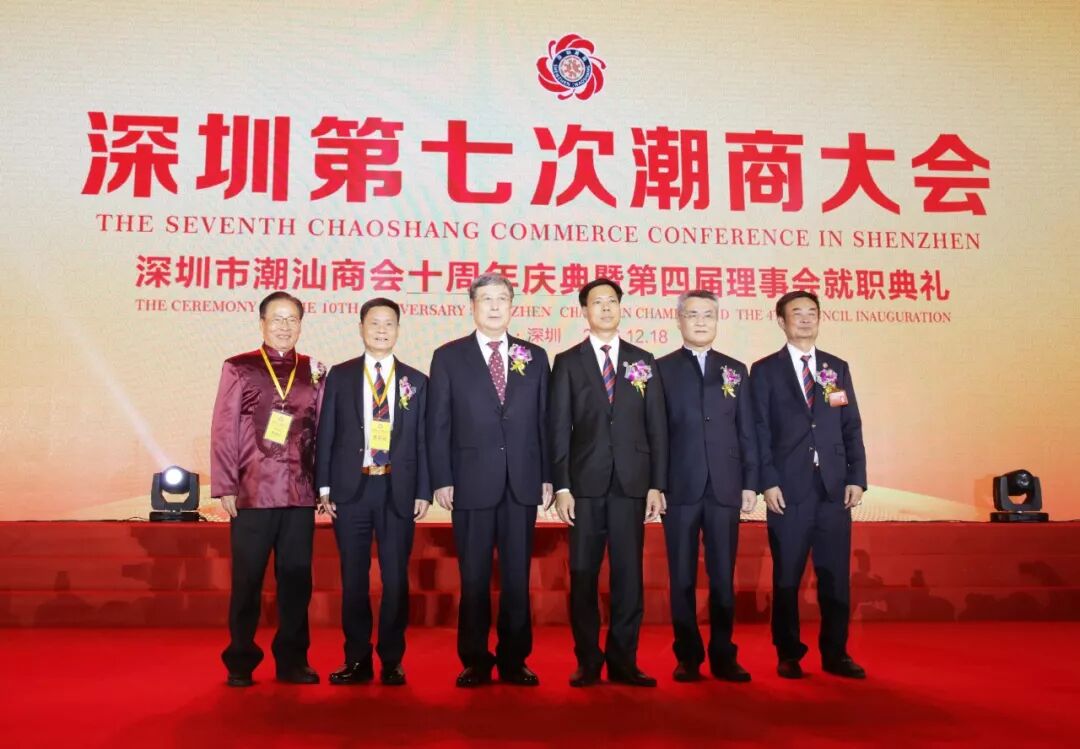 2016年12月18日下午,深圳第七次潮商大会、深圳市潮汕商会十周年庆典暨第四届理(监)事会就职典礼在会展中心5号馆隆重举行。大会以“潮商情、中国梦”为主题。来自国家、省、市领导、港澳台以及25个国家、146个潮属商会代表团会长、潮人精英、政商名流及商会会员2000多人出席大会,共商推进全球潮商合作发展大业。
