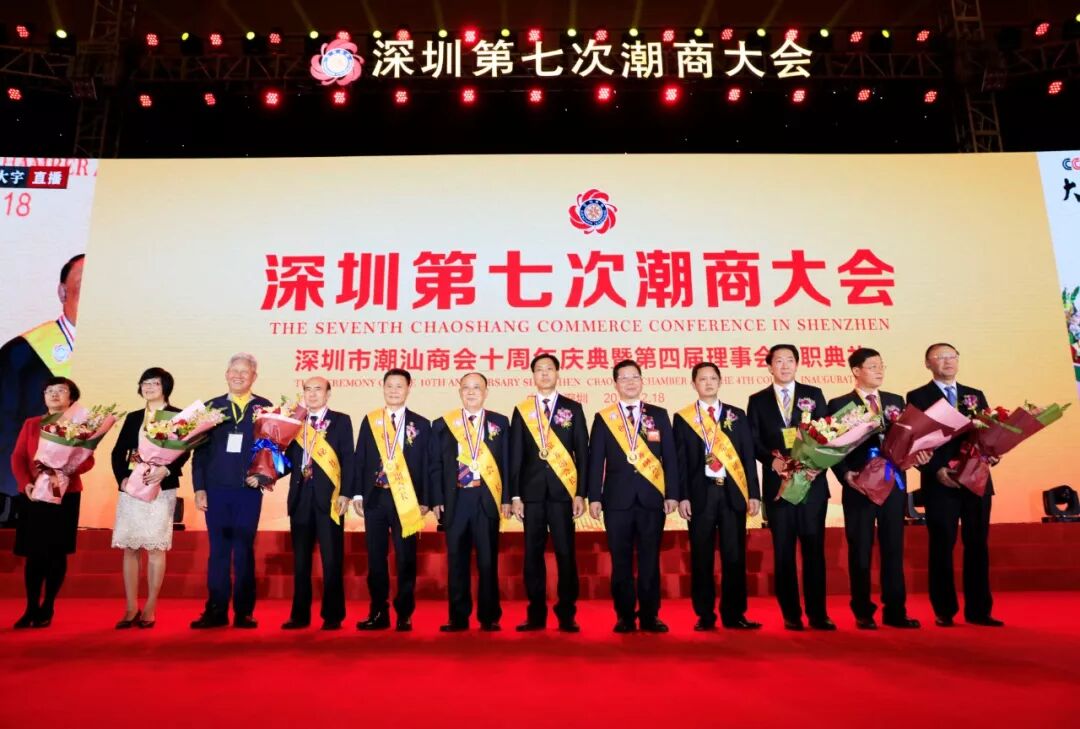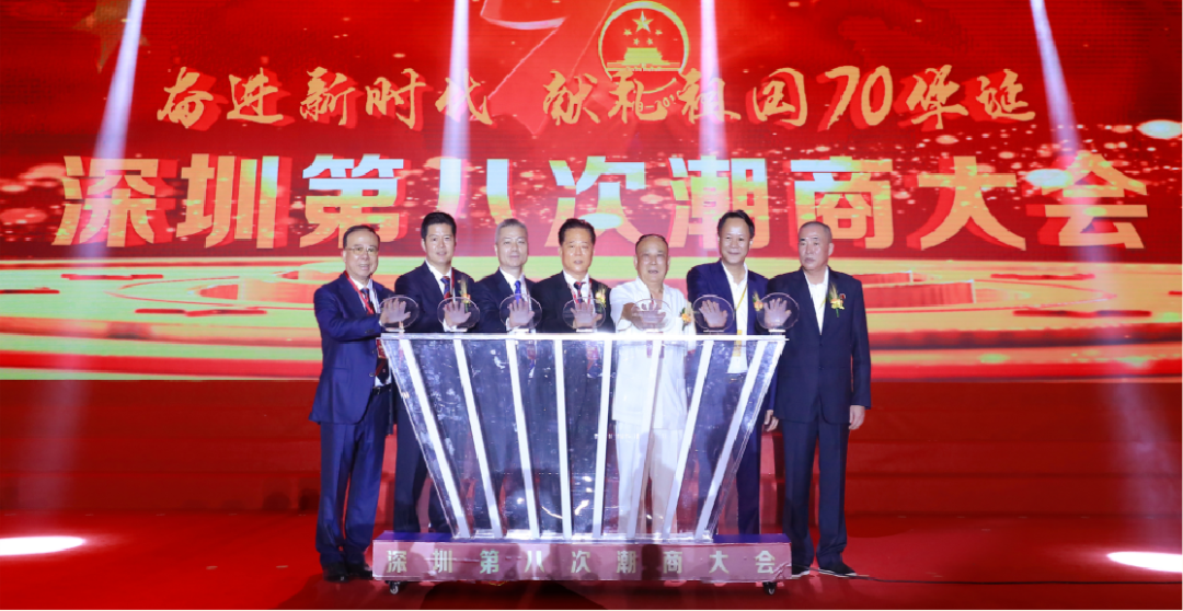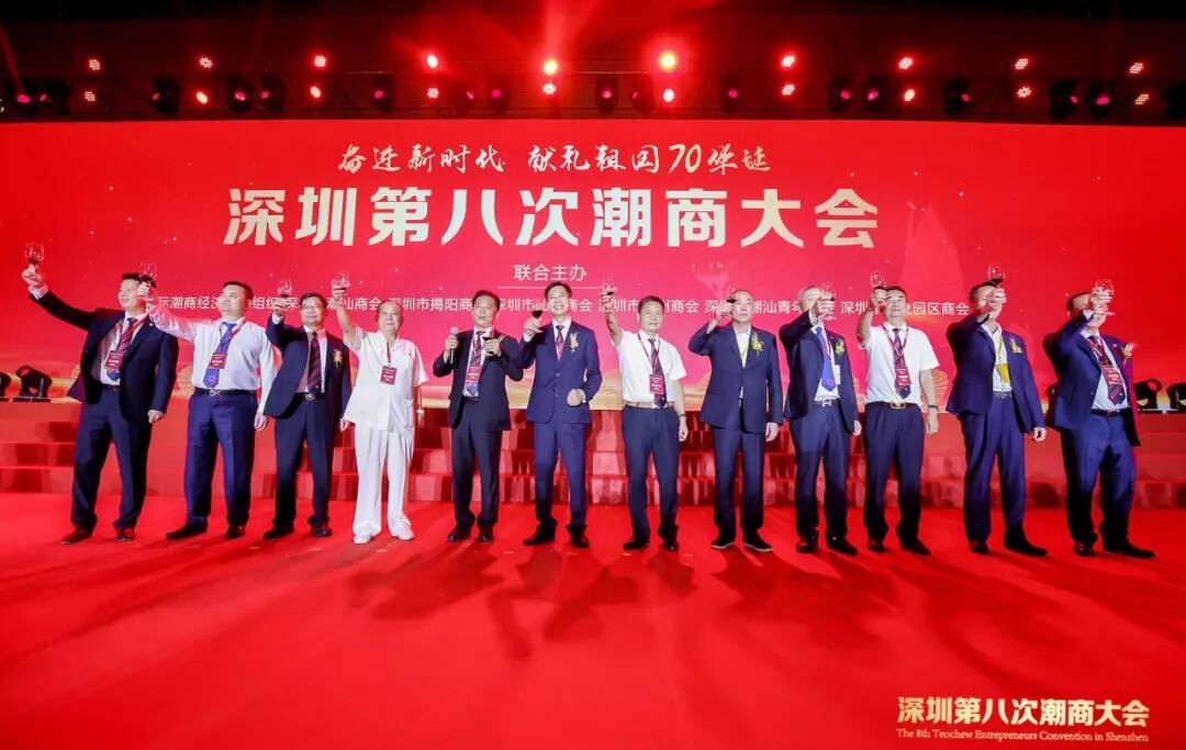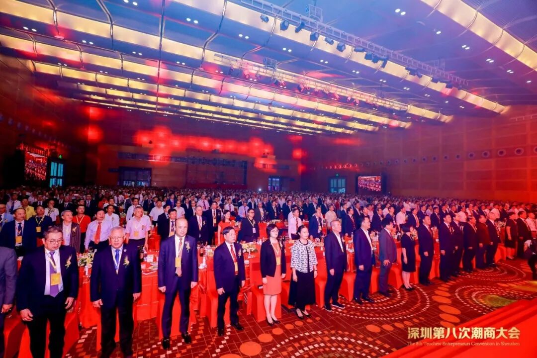 2019年8月12日,深圳第八次潮商大会暨深圳市潮汕商会第五届理事会、监事会,深圳市汕头商会第三届理事会、监事会就职典礼在深圳会展中心5号馆隆重举行。本次大会由国际潮商经济合作组织、深圳市潮汕商会、深圳市揭阳商会、深圳市汕头商会、深圳市潮州商会、深圳市潮汕青年商会、深圳市产业园区商会联合主办,深圳市商业联合会特别支持。国家、省、市有关领导,来自世界15个国家和地区以及香港、澳门、台湾的168个商协会代表团、潮人精英、政商名流及商会会员近2000人出席大会,共同见证两会新一届领导班子履新就职,共谋潮商发展大计。
