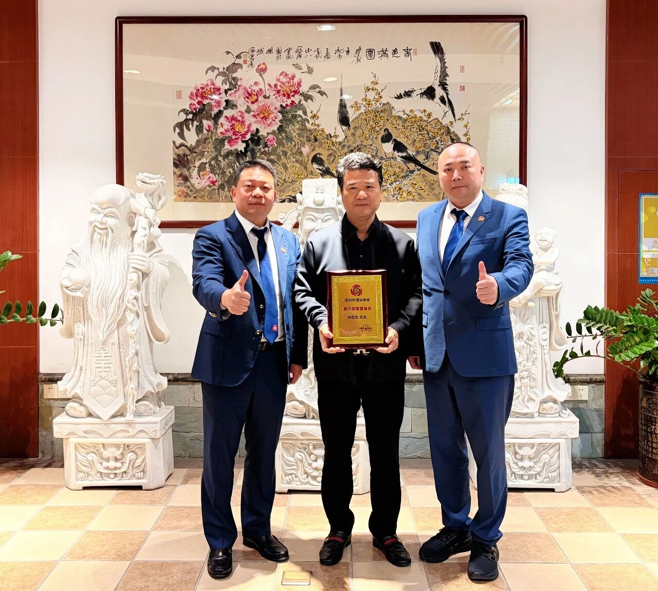 2025年12月28日下午,我会会长刘海景率团拜访荣誉会长、深圳旭生实业集团有限公司董事长林启生。驻会会长黄育宏,监事长许建洲,党委书记陈镇文,轮值会长许瑞江、李晓伟,常务副会长李文辉、张俊龙、林锦乙、郭永勇、吴怡德、谢考居、谢有成、马日龙、陈文振、林展鹏、张晨芸,会长助理李楚芬,会员部主任洪丽珠、品牌部主任何旭纯等随同参加。