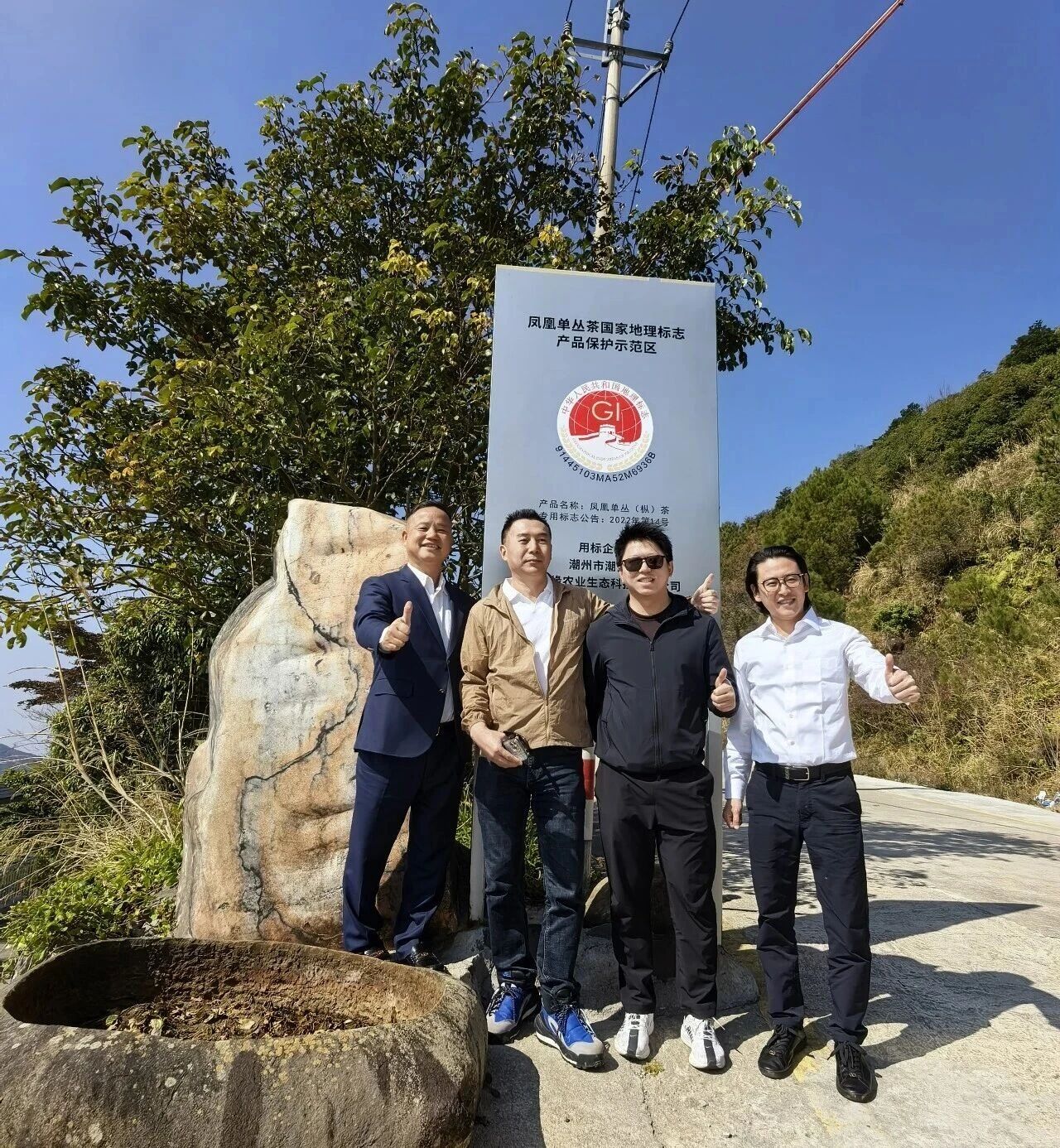 在凤凰单丛茶国家地理标志产品保护示范区牌前合影