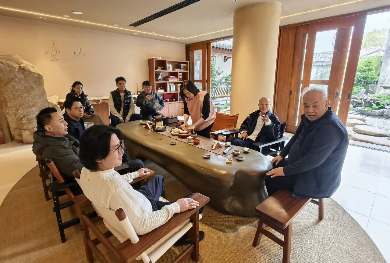 考察期间,谢有成、于大明、林伟龙一行还专程拜访了潮州市潮州工夫茶文化研究会会长谢鸿洲,以及国家级非物质文化遗产潮州手拉朱泥壶代表性传承人谢华,大家围绕凤凰单丛茶产业提质、茶旅融合路径创新、非遗文化活化推广等话题进行交流,凝聚发展共识,助力潮州特色文化产业高质量发展。