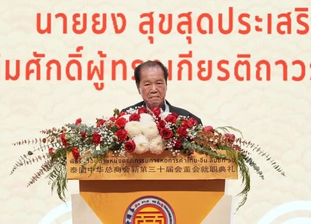 泰国枢密院主席素拉育·朱拉暖上将在致辞中强调,泰国中华总商会是泰中两国的桥梁,在推动贸易投资方面发挥重要作用,促进了泰国经济可持续增长。他相信,泰国中华总商会将继续为泰中两国经贸投资做出新的贡献,推动两国关系持续稳定发展,实现互利共赢。