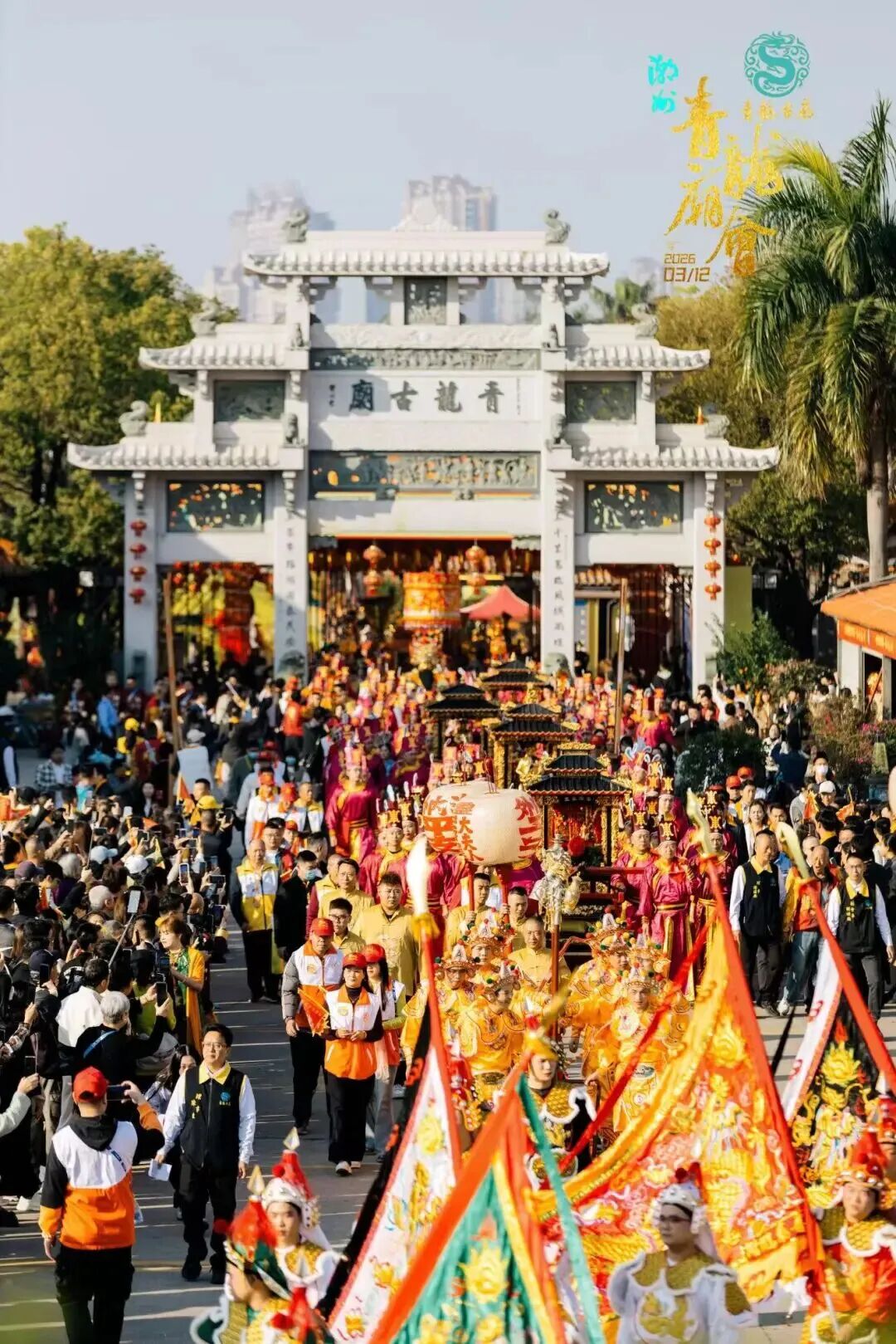 2026年3月12日(正月廿四),由潮州王伉传统文化研究会、青龙古庙管理委员会主办的2026年“潮州青龙庙会”非遗巡游活动在潮州古城盛大举行。来自海内外134家潮属社团的侨领、会长、代表及嘉宾等近1000人齐聚潮州出席盛会,和潮州市民游客共享这一文化盛宴。