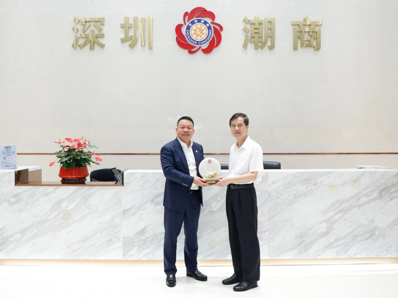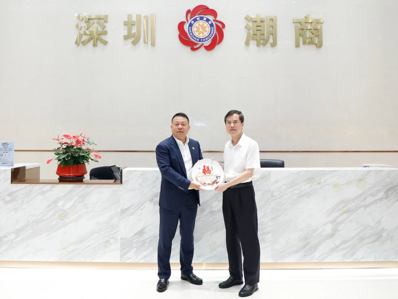 我会会长刘海景对王忠书记一行的到来表示热烈欢迎。他表示,王书记曾于2023年到访我会,此次再度莅临,既是对商会工作的关心与支持,也是深化情谊、共谋发展的重要交流。刘海景会长介绍,商会正围绕 “3+2+1” 发展框架,以三大战略为引领、两大平台为支撑,聚力打造新潮商共同体。梅州是著名革命老区、素有 “世界客都” 美誉,作为客家民系重要发源地,人文底蕴深厚、生态禀赋优良,发展空间广阔。商会与广东省客家商会往来密切,从联谊互动到资源联结,再到发展联盟,持续升华 “潮客一家亲” 的深厚情谊,也让商会与梅州的联系更为紧密。希望以此次交流为契机,双方加强优势互补、资源共享,促进多层次宽领域互惠互利,推动两地民营经济合作共赢发展。