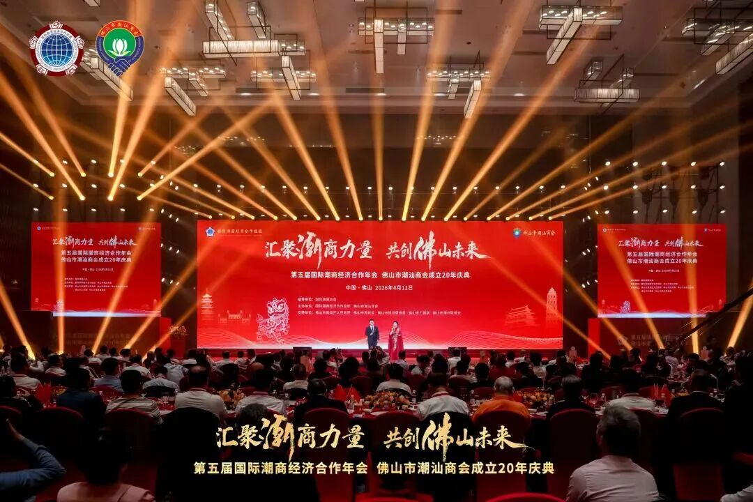 2026年4月11日,“汇聚潮商力量 共创佛山未来”第五届国际潮商经济合作年会暨佛山市潮汕商会成立20周年庆典在佛山南海举行,海内外1600多位知名潮商齐聚一堂。现场落地一批产业投资、出海赋能等合作项目,展现南海优越的营商环境与强劲的发展动能。