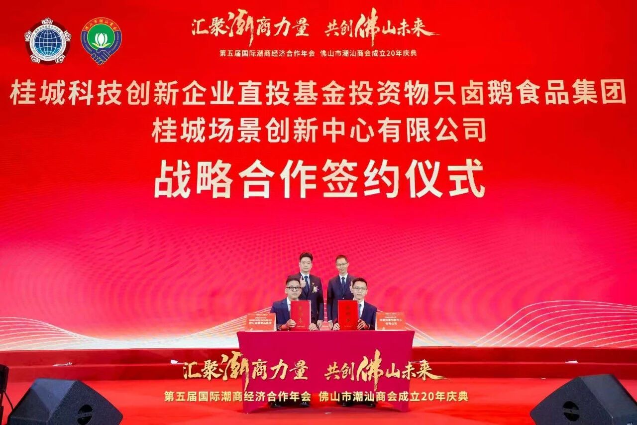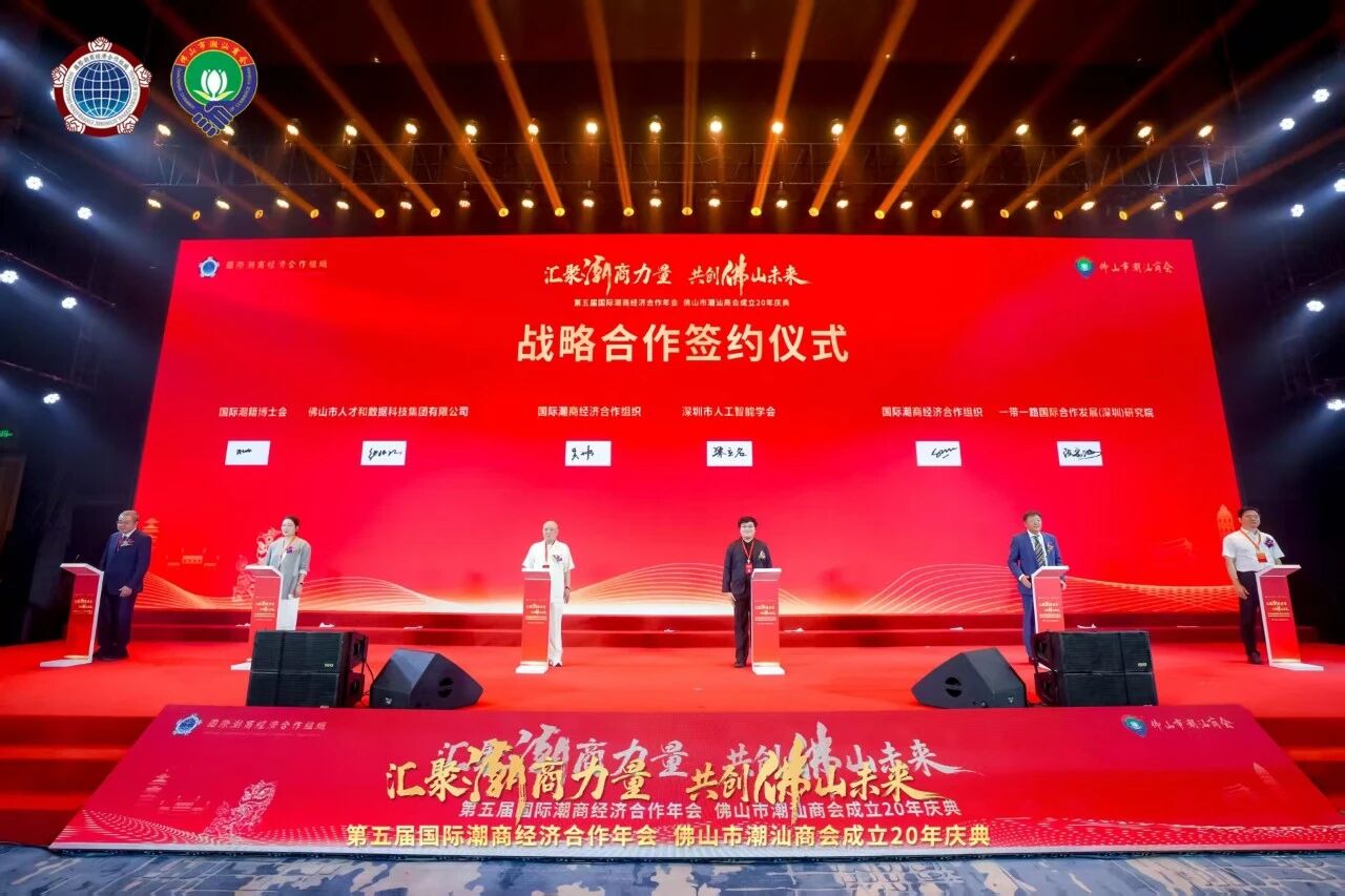 现场还举行了国际潮籍博士会与佛山市人才和数据科技集团有限公司、国际潮商经济合作组织与深圳市人工智能学会、国际潮商经济合作组织与一带一路国际合作发展(深圳)研究院、桂城科技创新企业直投基金投资物只卤鹅食品集团暨桂城场景创新中心有限公司战略合作签约仪式。