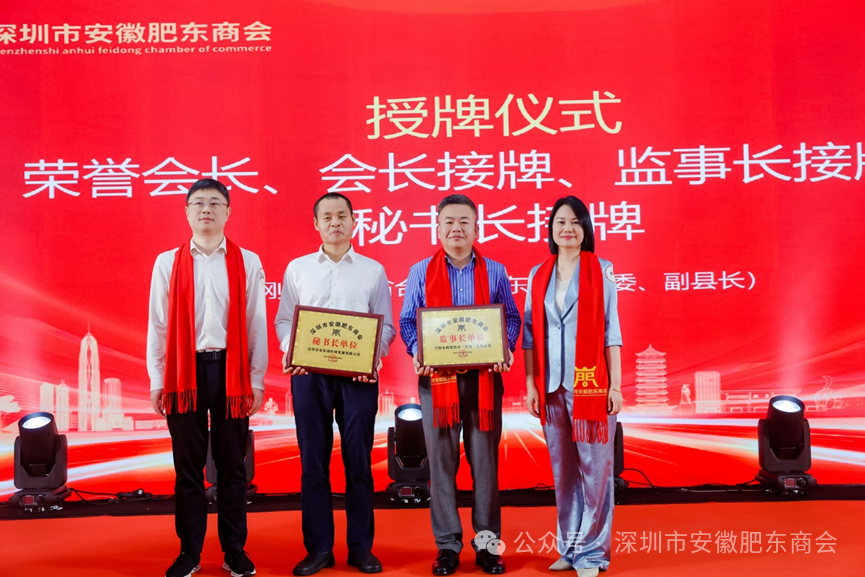 安徽省政府驻广州办事处联络处处长、一级调研员王林松,肥东县委常委、副县长吴刚,深圳市工商联副主席、深圳市安徽商会会长江汉,合肥市工商联副主席丁鼎,合肥市政府驻深圳办事处主任何晓玲,深圳市安徽肥东商会会长黄玲等共同为商会揭牌,标志着深圳市安徽肥东商会正式扬帆起航。
