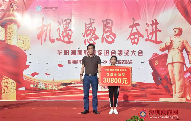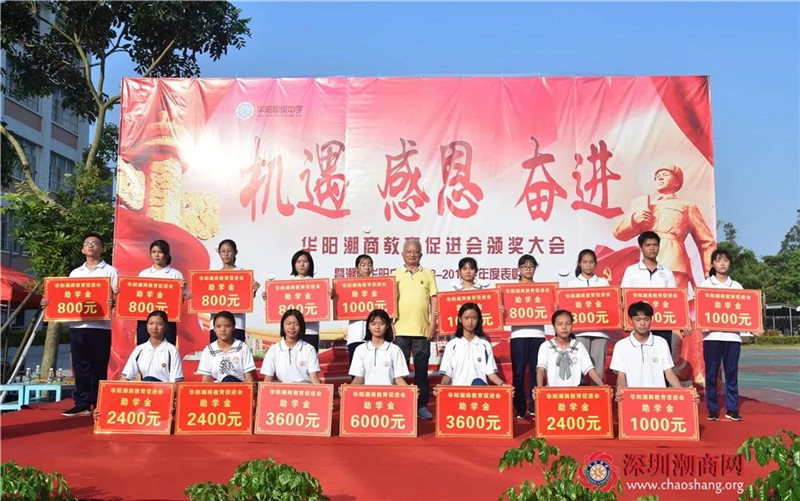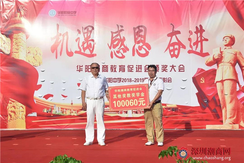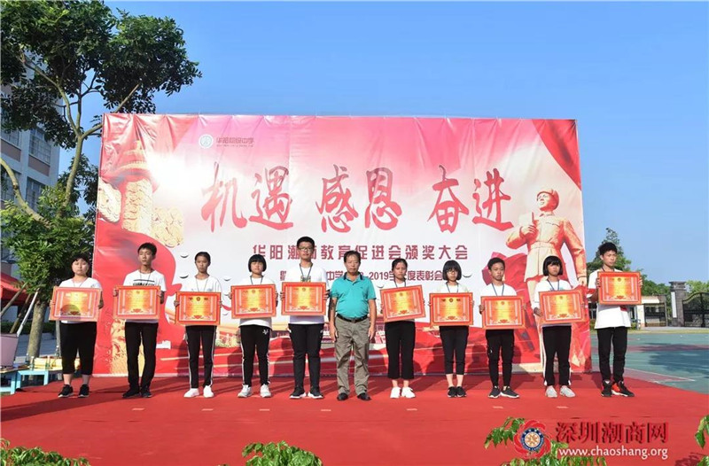 2019年9月26日下午,华阳潮商教育促进会在潮商华阳中学举行2018-2019学年度奖金颁奖大会,向优秀师生颁发奖教奖学金。河溪镇委书记郑宜椿,河溪镇委副书记、镇长吴海璇,华阳潮商教育促进会会长、我会创会会长吴开松,华阳潮商教育促进会执行会长、我会名誉会长卓振波,华阳潮商教育促进会副会长吴汉明,河溪镇委副书记汤庆健、吴铭,华阳潮商教育促进会秘书长、我会副会长吴茂强,华阳潮商教育促进会常务理事、我会副会长吴喜强等出席颁奖大会。