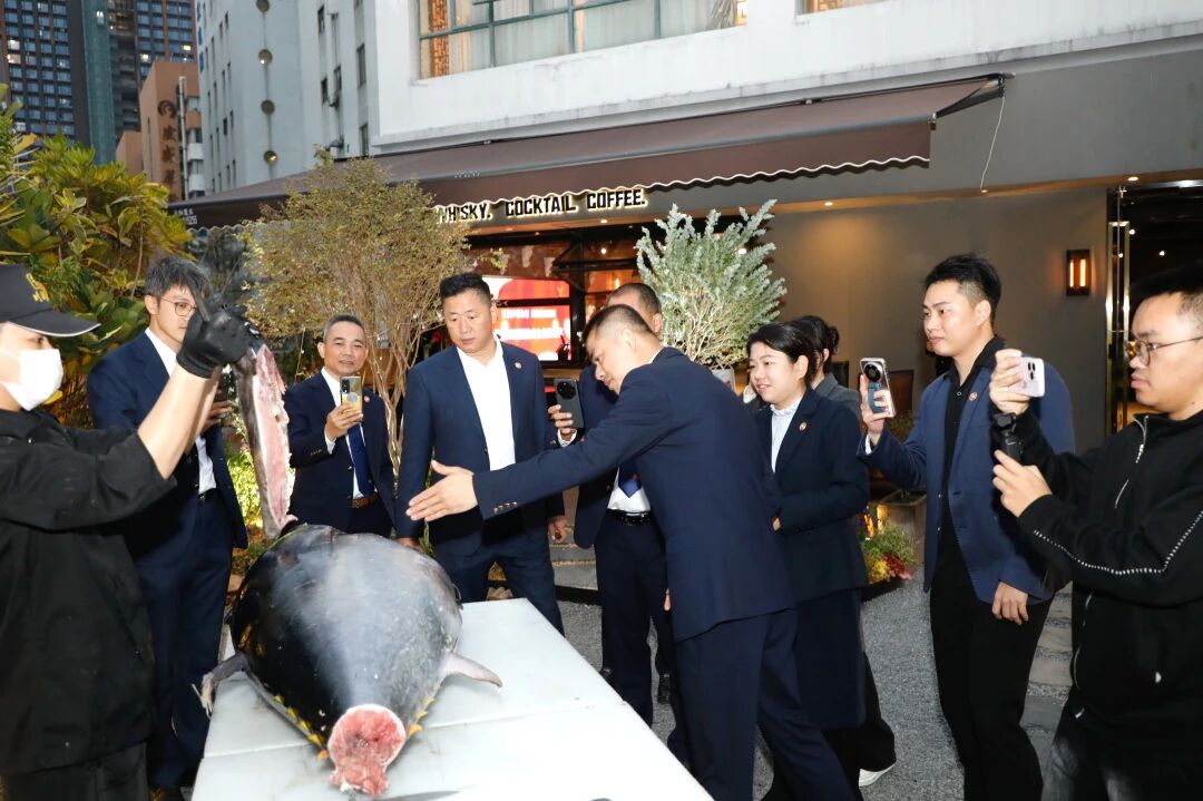 行程最后一站,走访团来到方泽川常务理事企业——深圳市川源顺餐饮管理服务有限公司,深入了解企业的经营业务与理念。方泽川常务理事对走访团进行了盛情接待,并特意安排开鱼展示,现场分割蓝鳍金枪鱼,同时向走访团细致讲解了该海产的产地来源、甄选标准、保鲜工艺及品质优势,让大家直观感受高端深海水产的品质与特色。